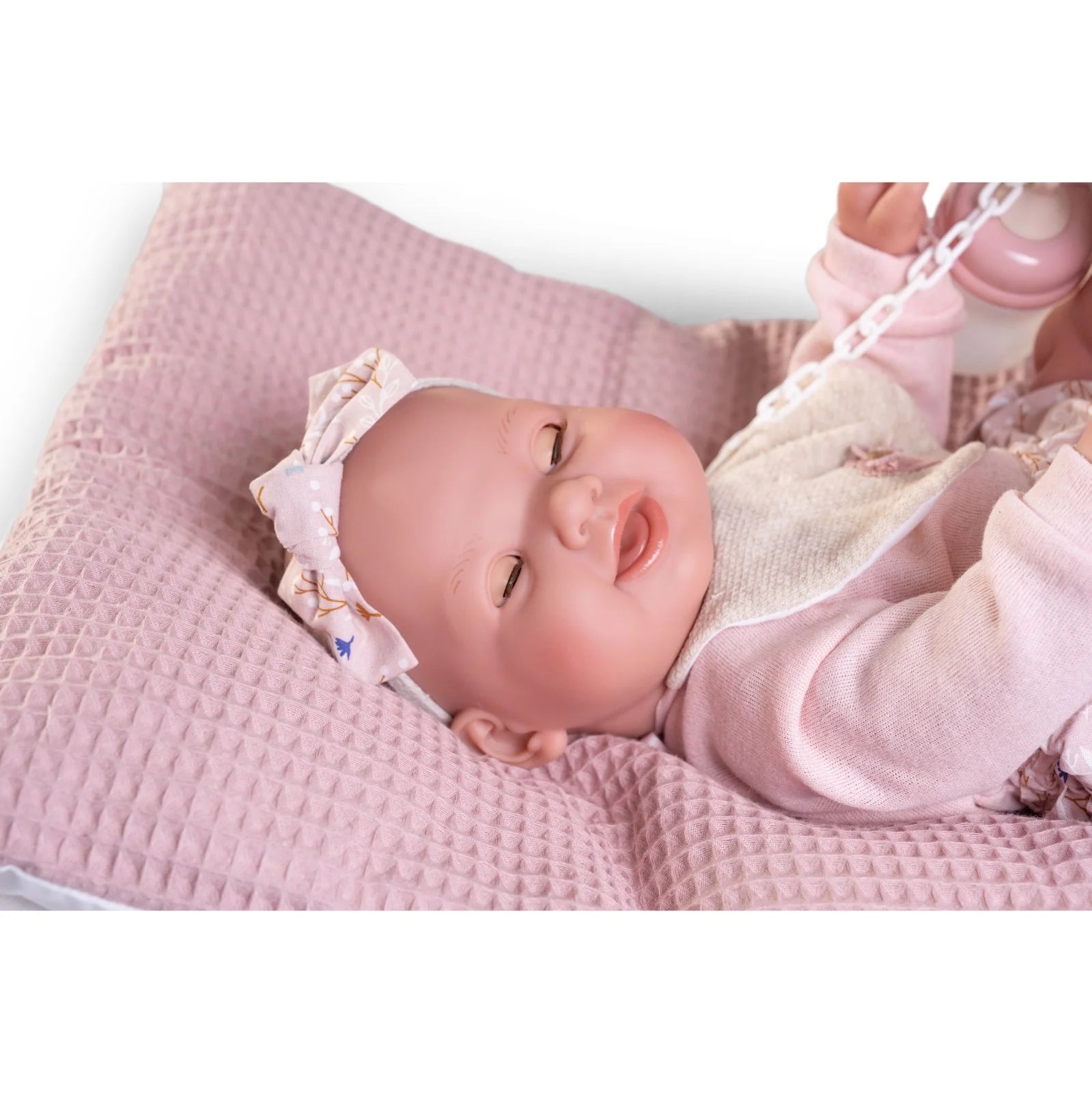 The philosophy behind the toys created by "Antonio Juan Dolls" is to capture the essence of innocence and the sweetness of childhood, and Mia perfectly embodies these values. Equipped with a pacifier attached to a chain, a bottle, and a diaper, Mia invites children to immerse themselves in a deeply realistic role-play, caring for her as if she were their own baby.