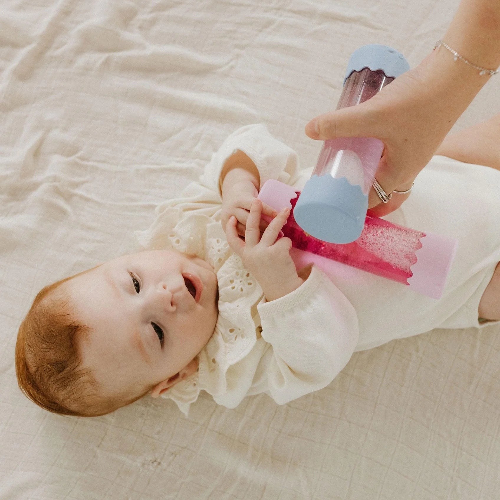 Babies are captivated by the swirling sparkles and glitter, while the transparent design allows your little explorer to witness a symphony of colours, shapes, and textures swirling within. It’s the perfect tummy time activity; simply roll it back and forth on playmats for endless fascination, enhancing motor skills and sensory development. Available in a vibrant array of colours, the Baby Calm Down Bottle offers a perfect sensory retreat for children of all ages.